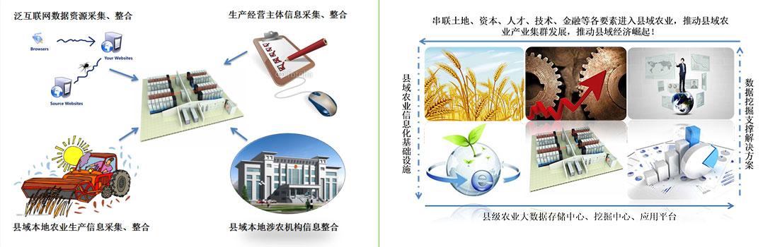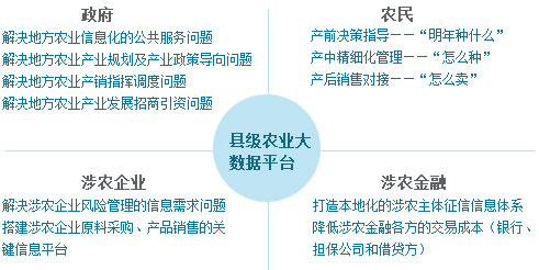 农业信息化时代催生出新的生产要素——大数据。2013年是大数据产业的元年,这一年大数据正式成为各个国家、各个行业、各个企业的战略重点。在农业领域里面,以农业大数据为核心的区域产业规划,才能有效融合土地、劳动力、资本、技术等其他要素,促进区域农业产业集群发展,带动县域农业崛起。建设农业大数据平台基础设施,为融入农业互联网,走上县域经济发展的快车道,铺平道路,打下基础。